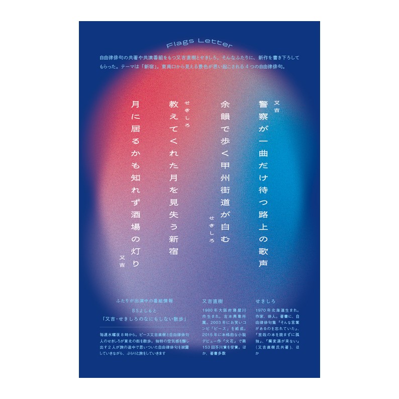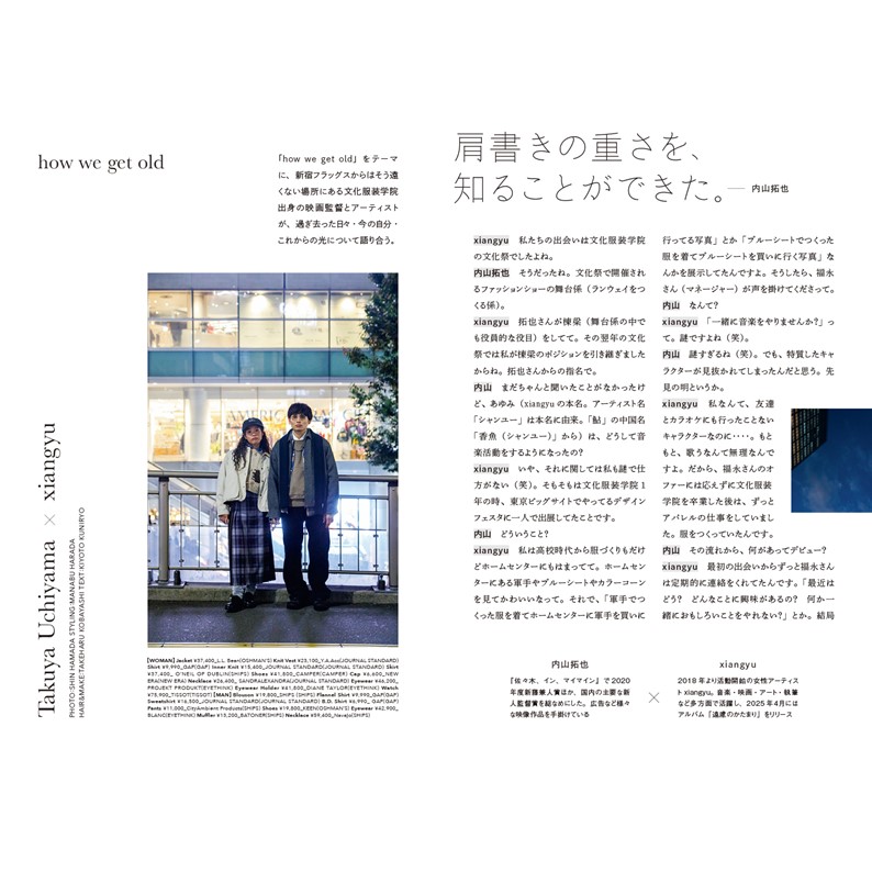性別、年代を問わず、幅広いライフスタイルを提案し続ける新宿フラッグスで、誰でも時を重ねることで、姿形も内面も変わっていく流れを、再開発や流行と共に変わっていく新宿東南口に重ねてみてほしいという想いでvol. 2を刊行いたします。