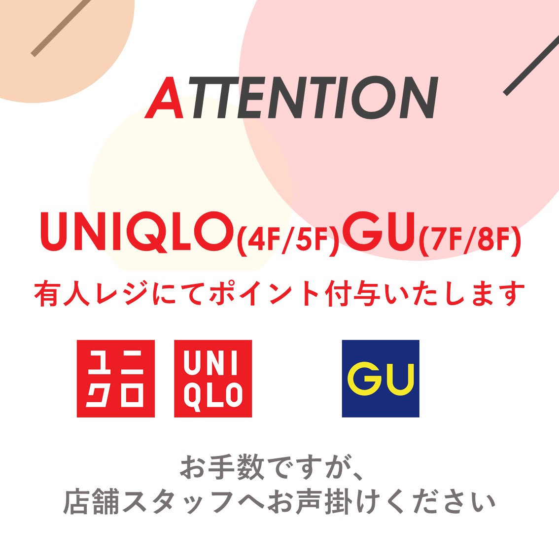 ※GU、UNIQLOをご利用の際は、有人レジにてポイント付与いたします。