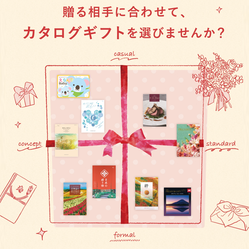 各種お祝いやお香典返し、お中元・お歳暮、法人ギフトなど様々なシーンに最適なギフトを取り揃えたカタログギフト専門ショップです。