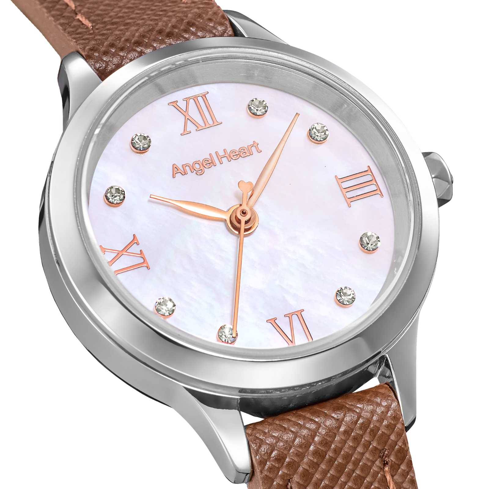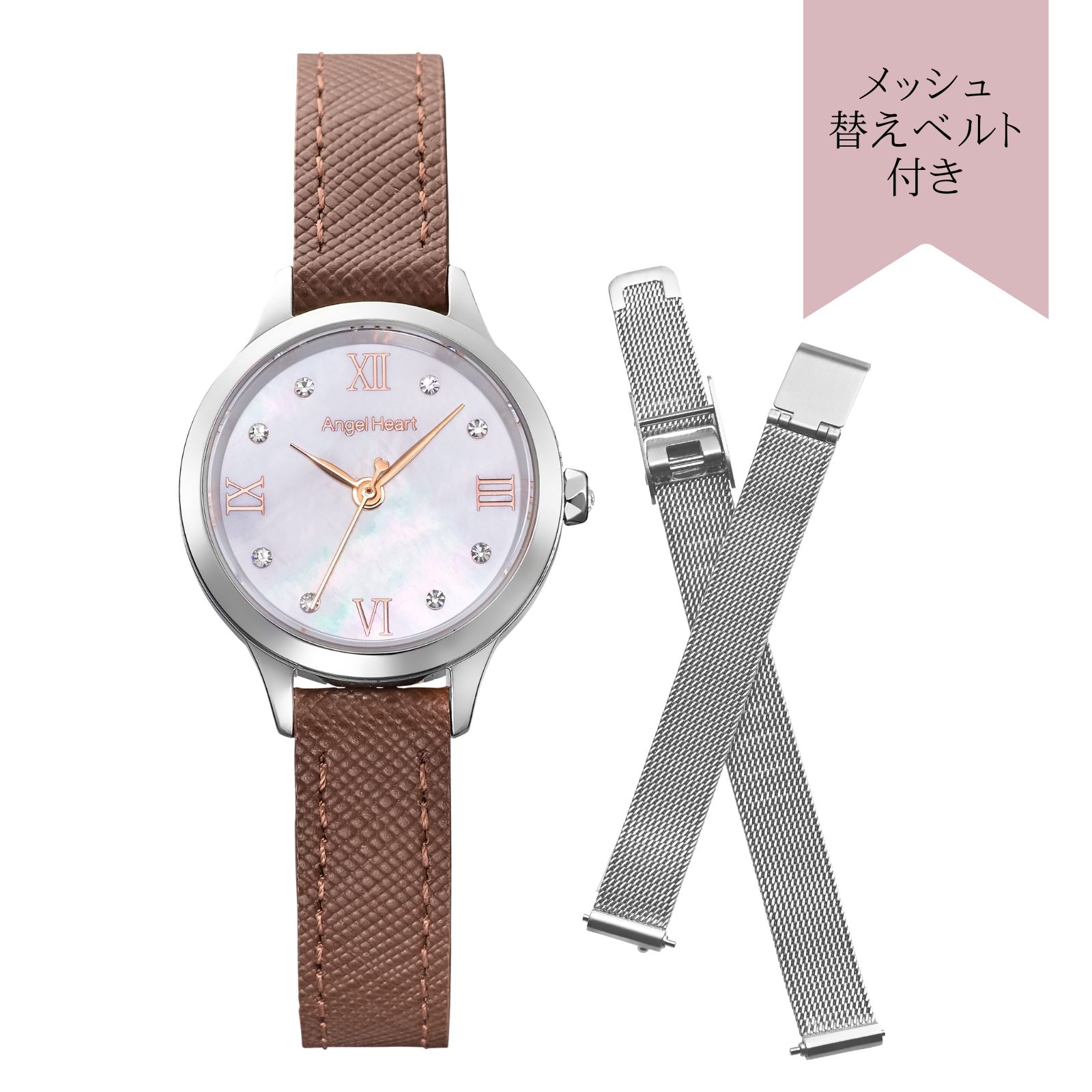 本作は橋本環奈さん着用モデル、25mm径と小ぶりなサイズと文字盤で煌めく8石のクリスタルが手元を華やかに彩ります。