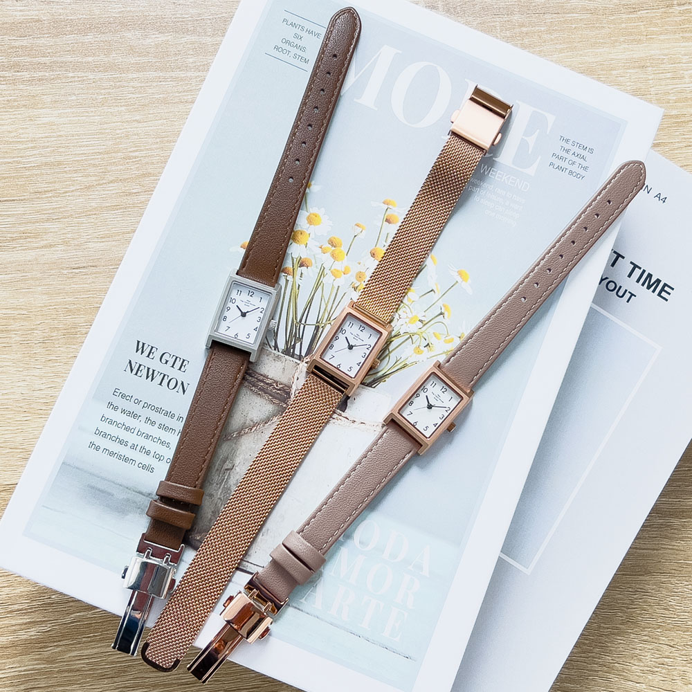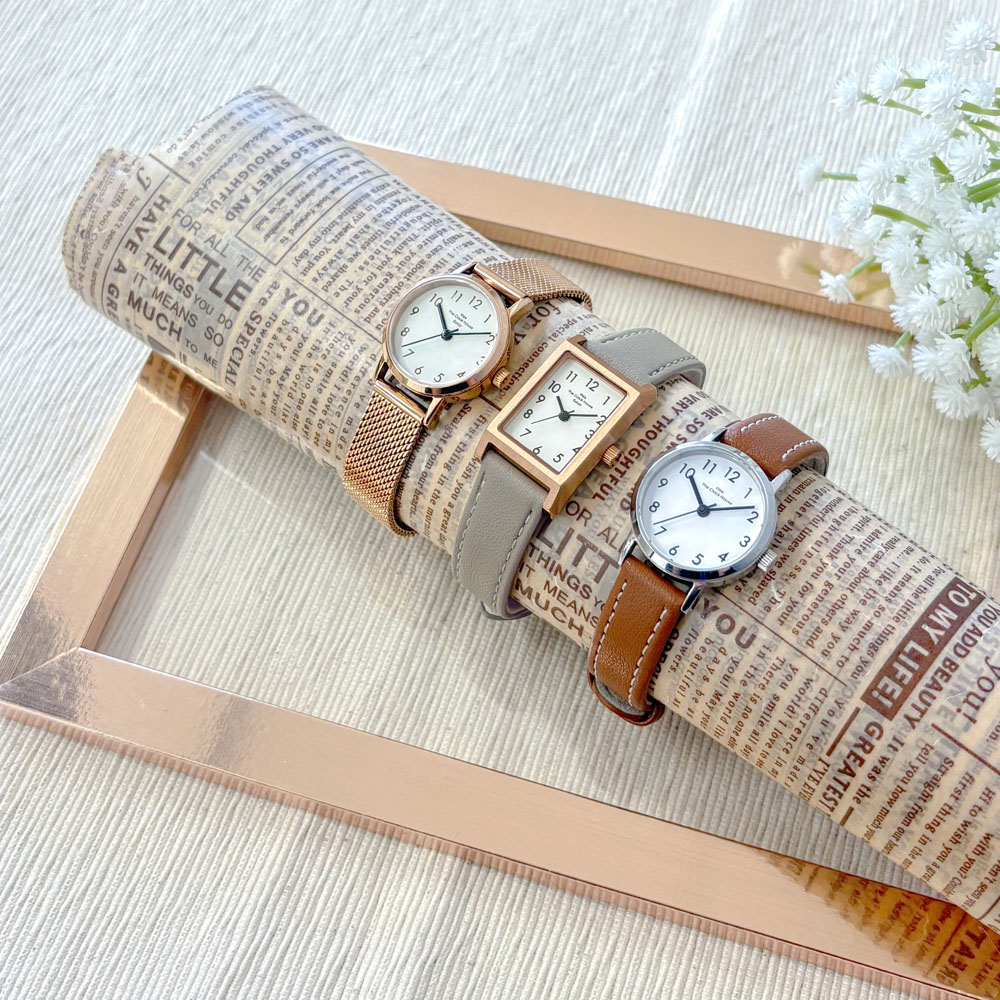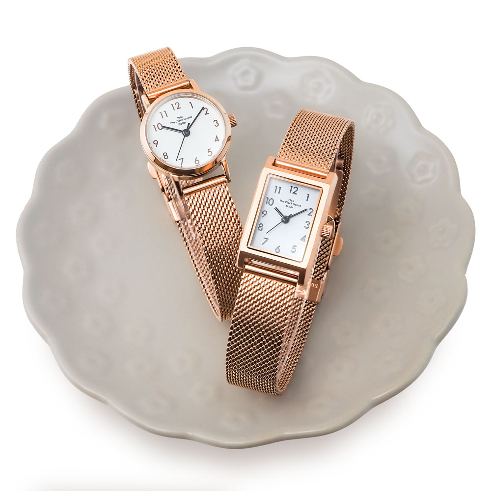 THE CLOCK HOUSE ナチュラルカジュアルスタイルのこれまでのコンセプトはそのままにレクタングルケース(長方形)やピンクゴールドカラー、グレージュカラーなど新たなエッセンスを加えた6モデルが登場。旬のかたちやカラーを身にまとい、いつもとはちょっぴり違うこの春のコーディネートをお楽しみください。