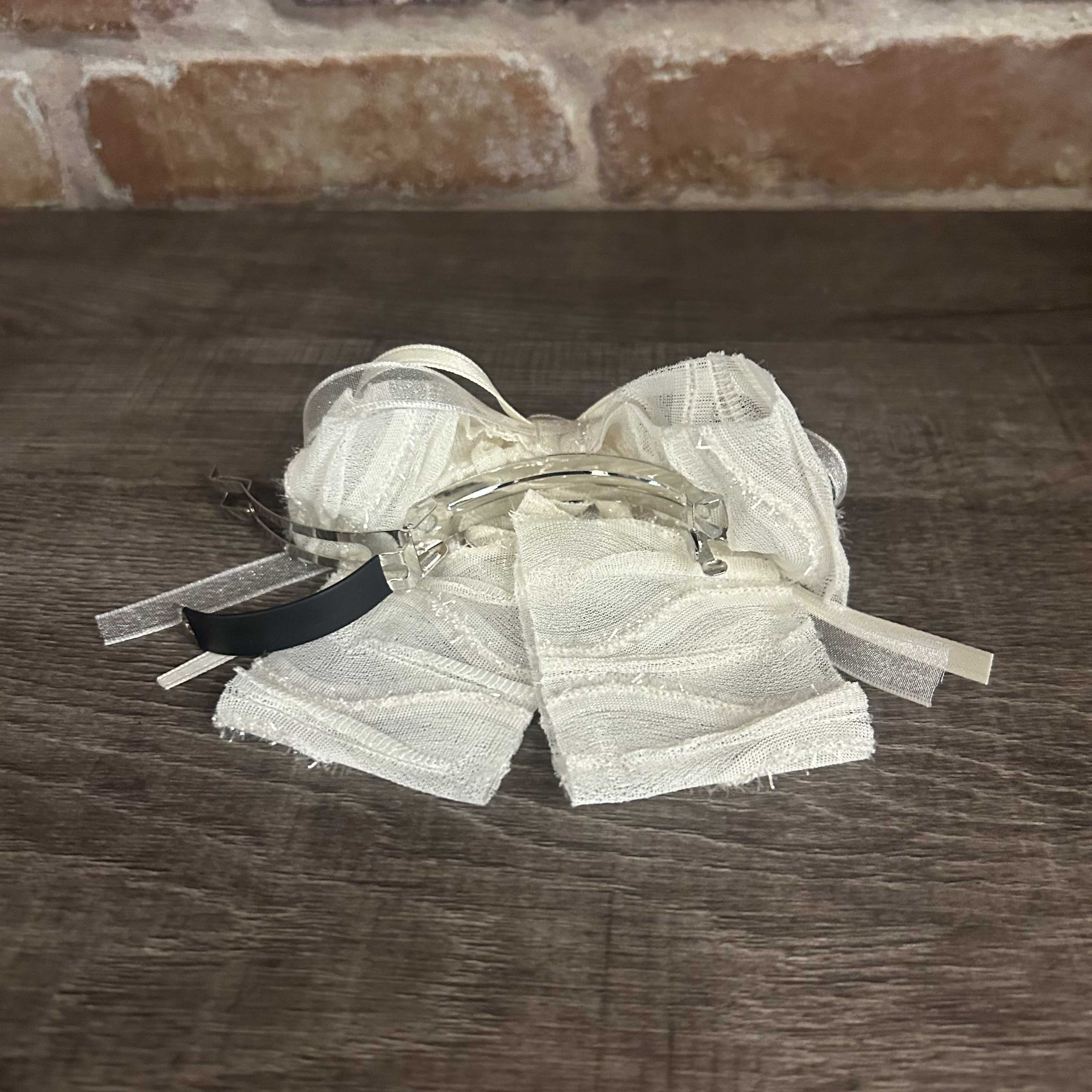 異なるデザインのリボンが重なり合うオーガンジー生地のバレッタ୨୧