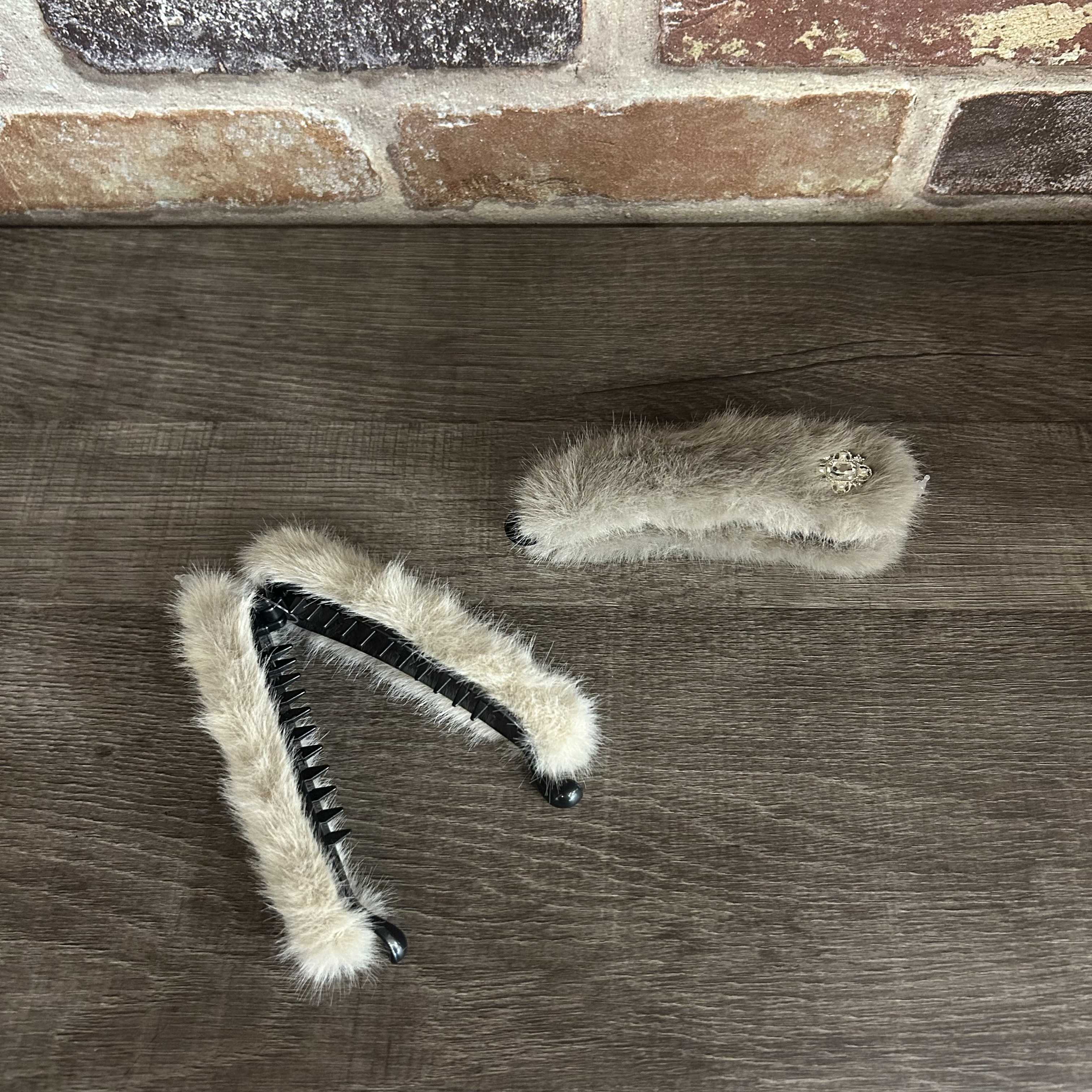 NEWビジュー付きファーバナナクリップ