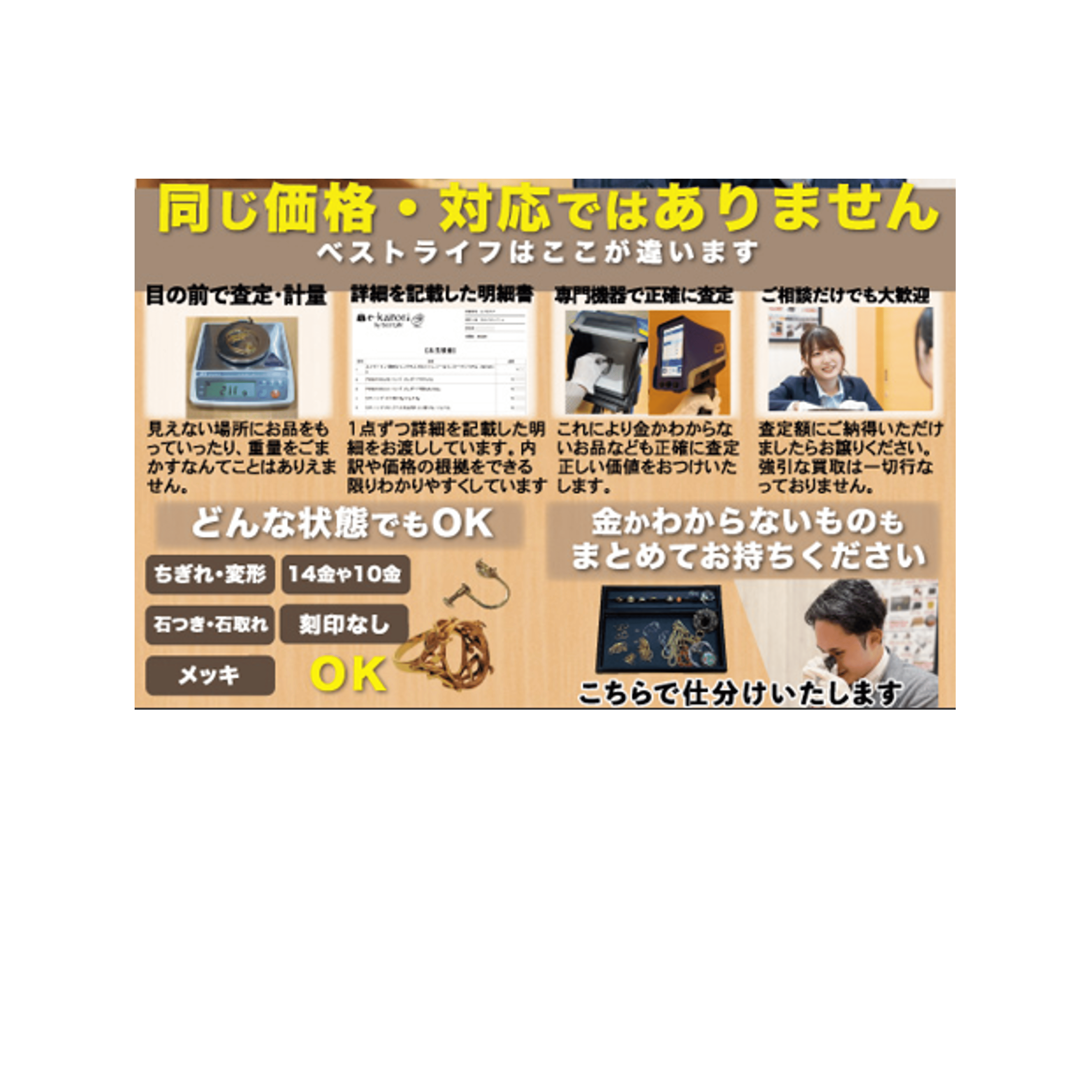 当店では当日の相場に基づいた正確な査定と、わかりやすいご説明を心掛けております!