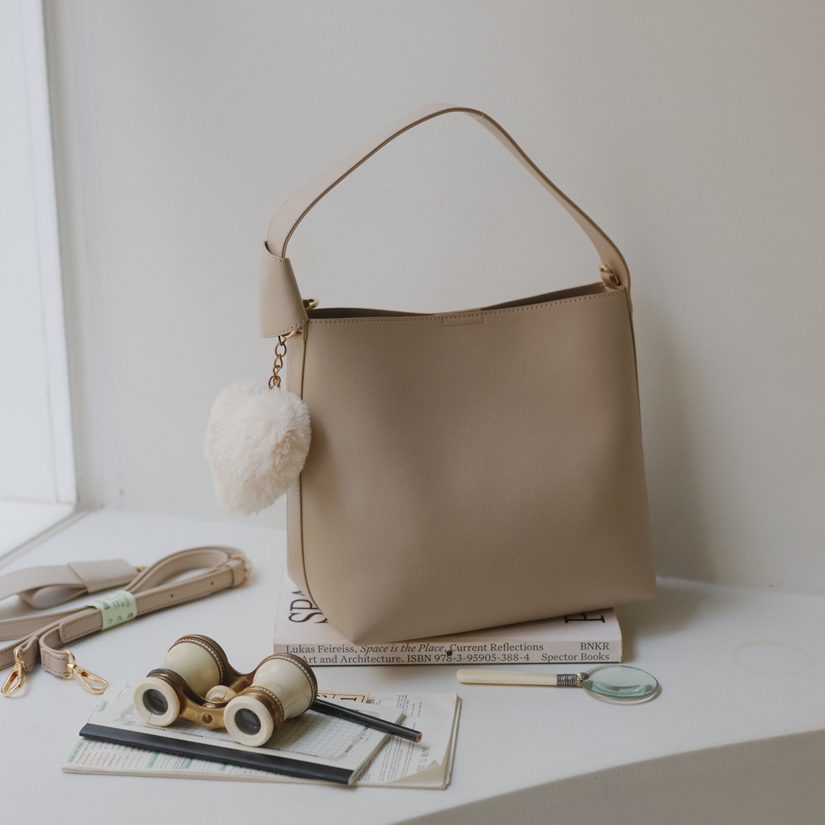 見た目はミニマルながら、フォルムや持ち方を気分に合わせてアレンジできるのが魅力。内側には整理しやすいポケット付きで、マチもあるため収納力もしっかり。