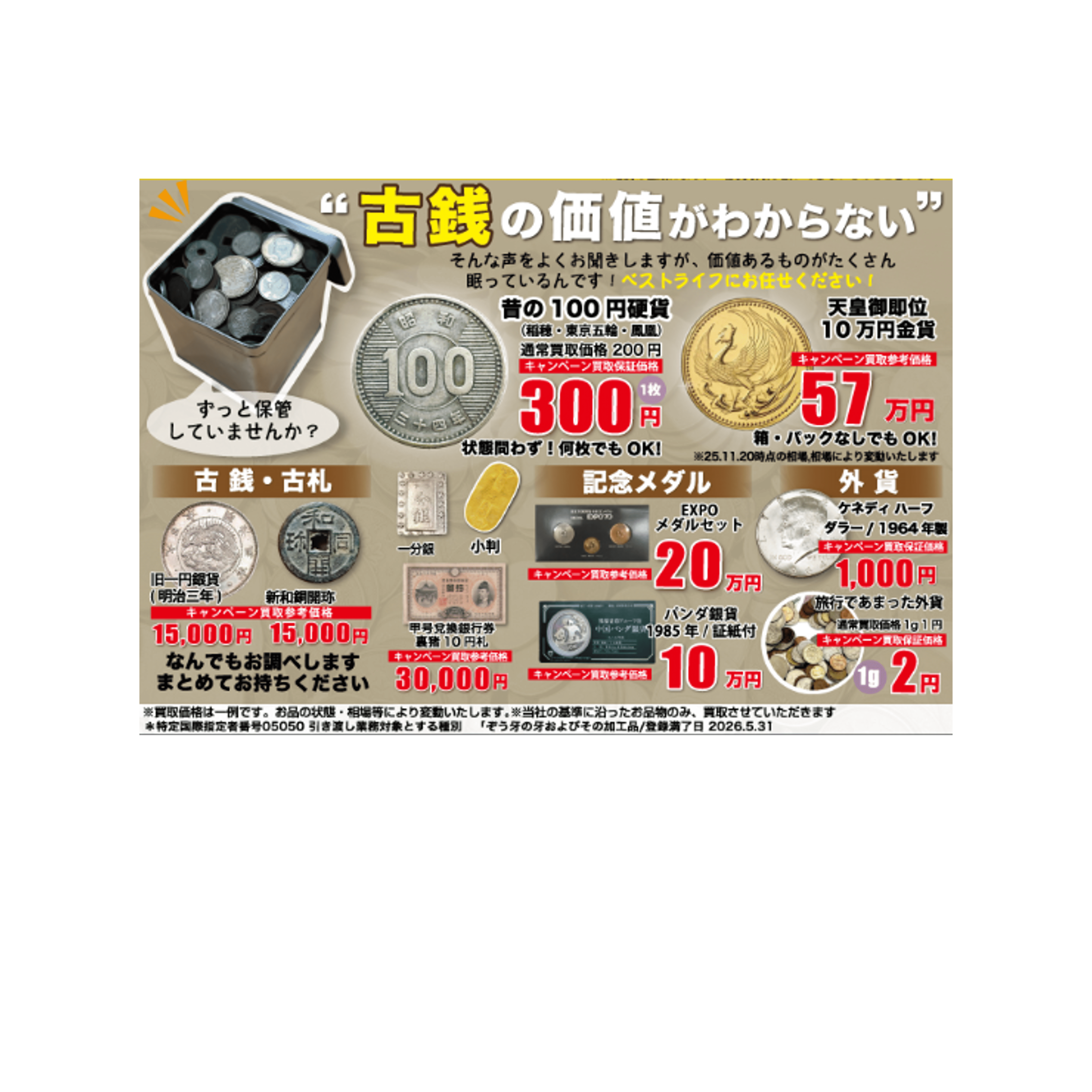 また、どんなものか分からない古銭やアクセサリーもぜひお持ちください♡