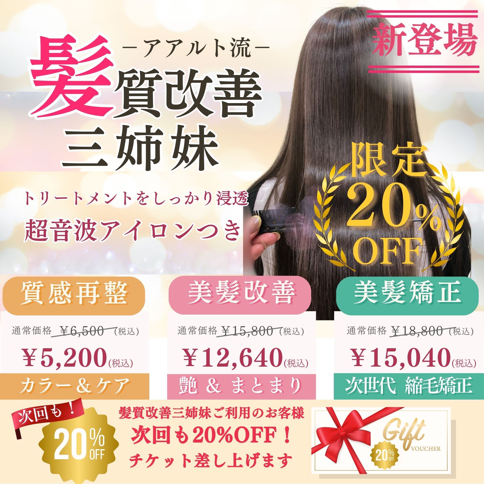 NEW綺麗な髪で新年を迎えよう!『キラメキ・カガヤキトリートメント』、『髪質改善 三姉妹』キャンペーン中!