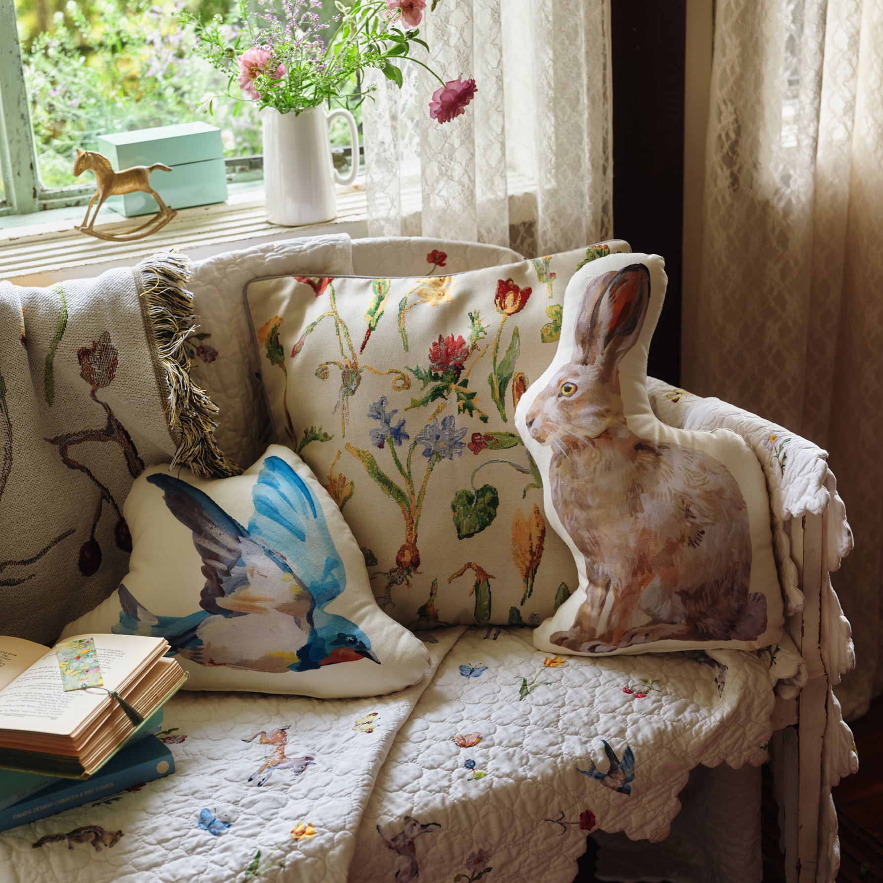 鮮やかな色彩で自然を描くアーティスト、庄島歩音さんとのコラボレーション。春のそよ風を感じる動植物モチーフのアイテムがラインアップ。植物や動物たちをあしらったマルチファブリックやクッションをはじめ、うさぎや草花のモチーフが愛らしいティーウエア、缶入りのお菓子など春を迎える自然の美しさが描かれたアイテムが揃います。
