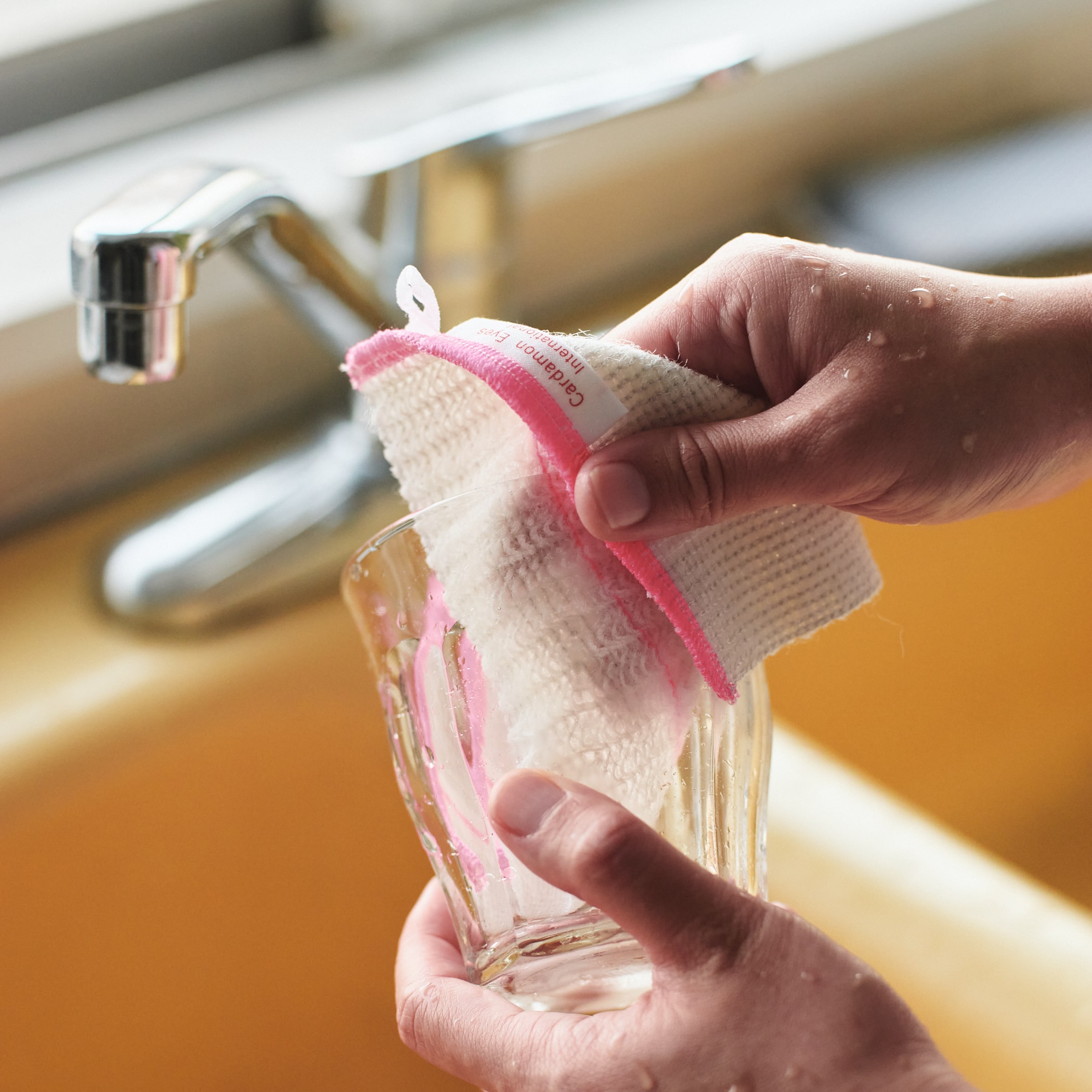 2枚目→ 洗剤を使わなくてもきれいに汚れが落ち、手肌に優しいアイテムです。サイズ PETIT ¥614 M ¥1289
