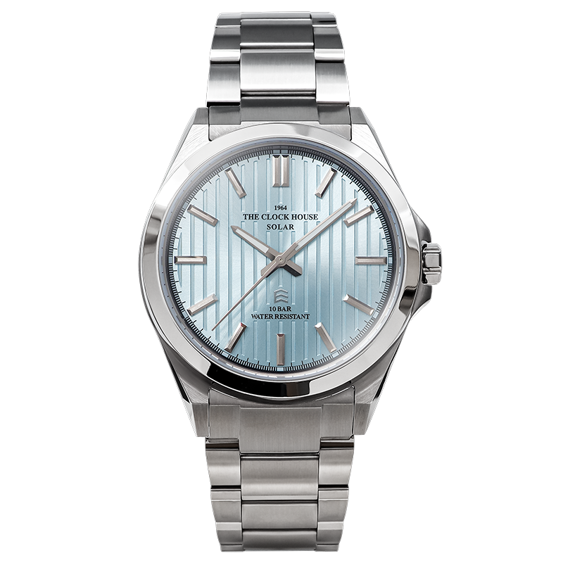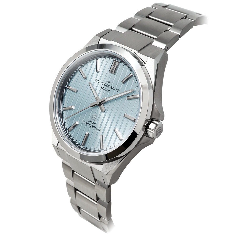 NEWTHE CLOCK HOUSEよりアイスブルー文字盤にストライプ仕上げを施したソーラーモデル登場