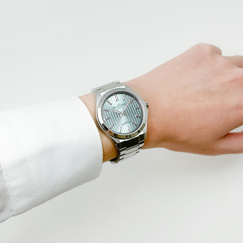 2025年発売モデル「THE EDGE(エッジ)」で好評を得た縦縞のストライプ文字盤に、爽やかなアイスブルーカラーが新たに加わりました。