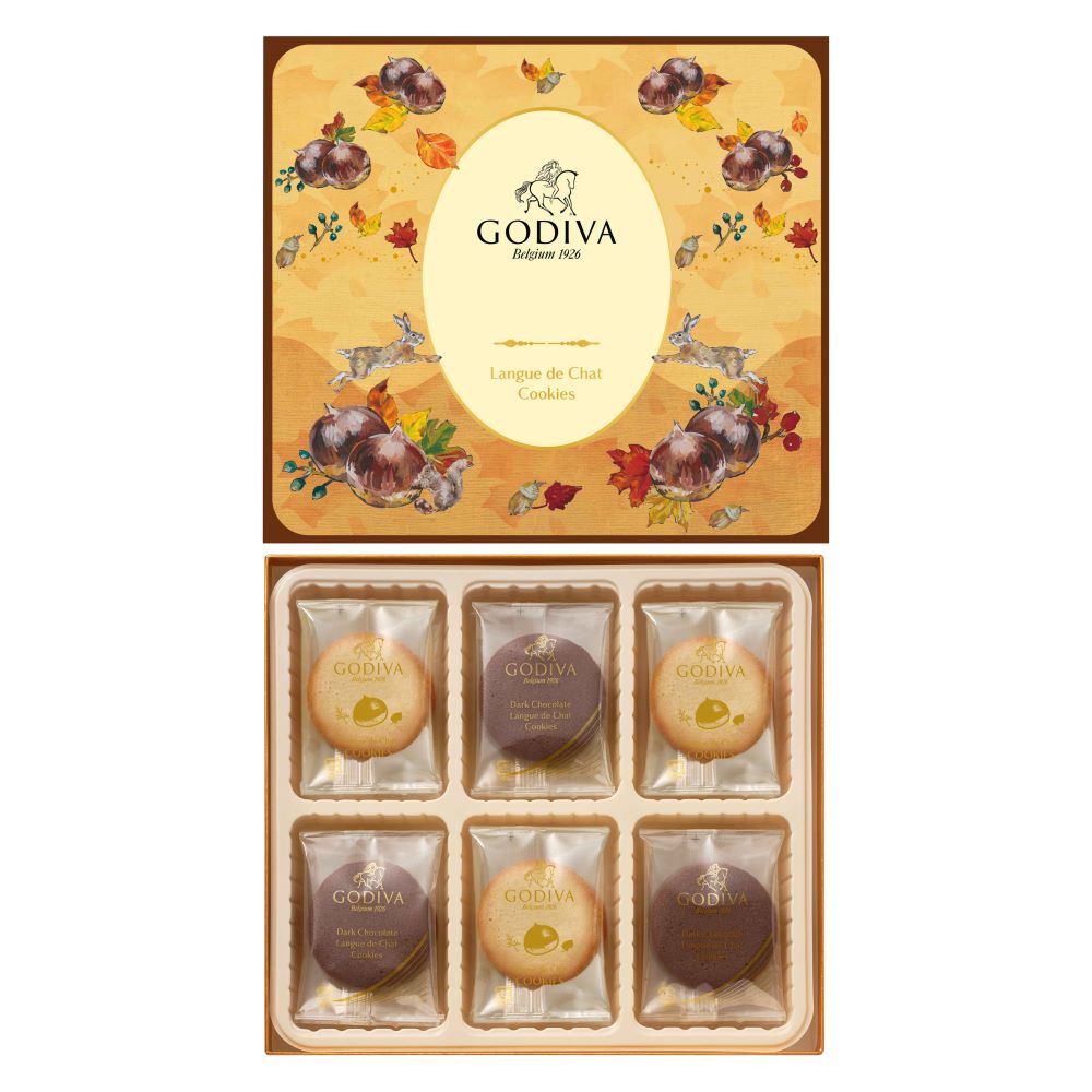 期間限定の「GODIVAモンブラン」と定番の「ダークチョコレート」を栗のイラストが秋らしい華やかなパッケージに詰め合わせました。サクッとした口あたりと、風味豊かなチョコレートのハーモニーをお楽しみください。