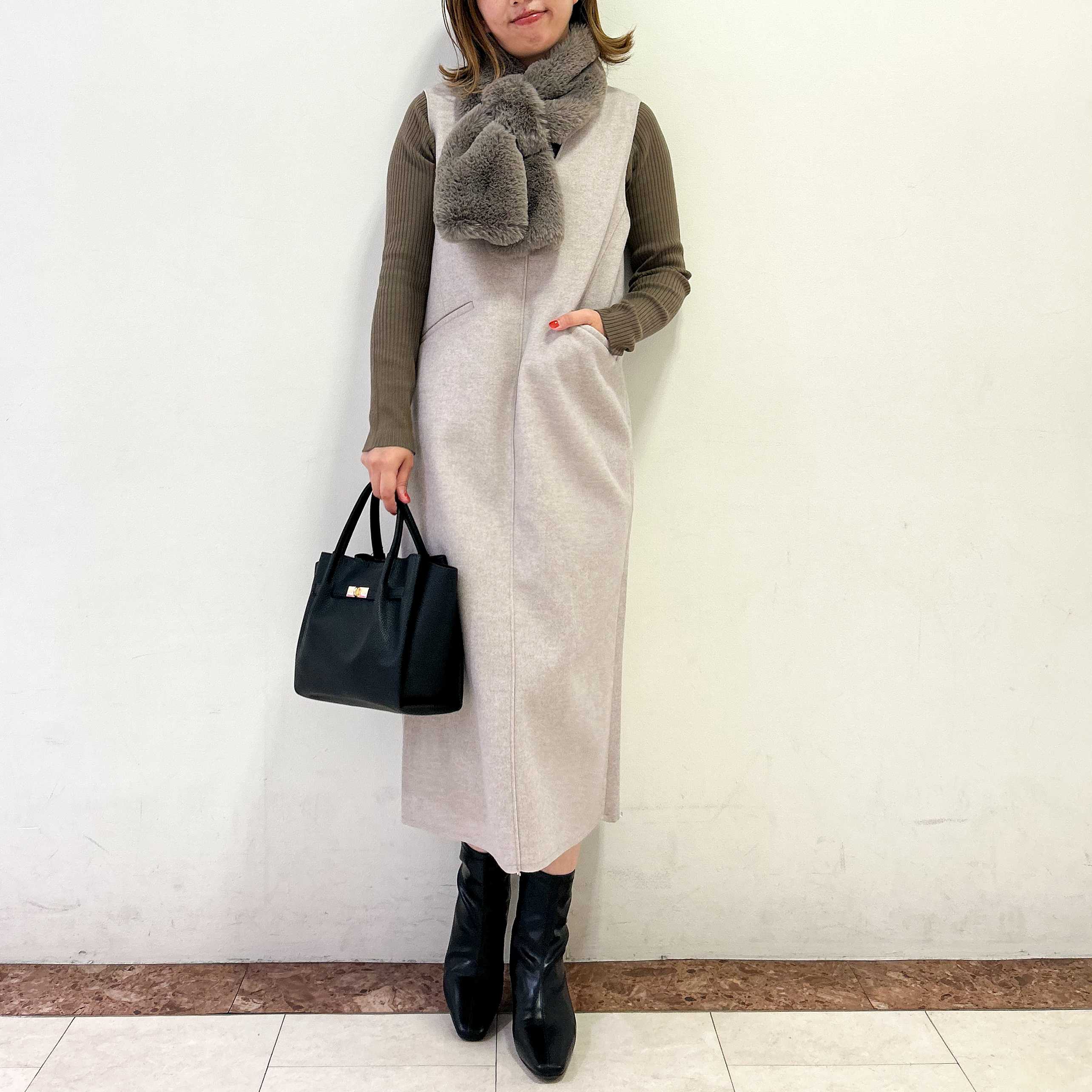 ・Vネック開きなので、ニットはもちろん、ブラウスなど幅広いインナー合わせでスタイリングが可能。