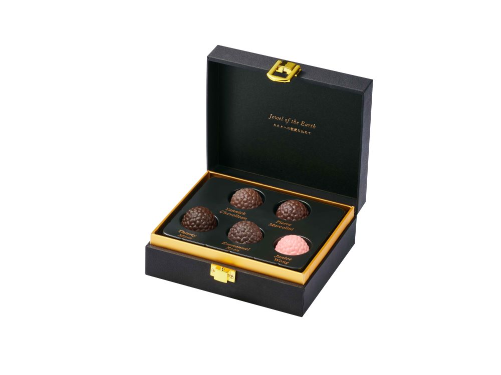 地球が育んだ宝石、カカオ。ゴディバの創立100周年を祝して、世界の舞台で活躍するスターシェフ5人がカカオへの深い敬愛を込め、それぞれの感性で創り上げた限定トリュフが誕生しました。ひと粒ごとにそれぞれのスターシェフの感性輝く、カカオの深い味わい。それらを真っ黒なトリュフのようなシックな箱に詰め、特別なアソートとしてお届けします。