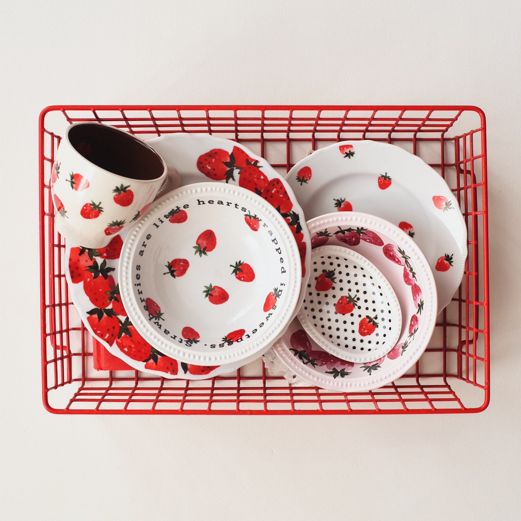 いちご柄のプレートやマグカップが新登場。ティータイムをもっと華やかに、もっと楽しく。お気に入りの紅茶やスイーツと一緒に、心ときめく時間を過ごしませんか? 是非、店頭でご覧ください。お待ちしております。