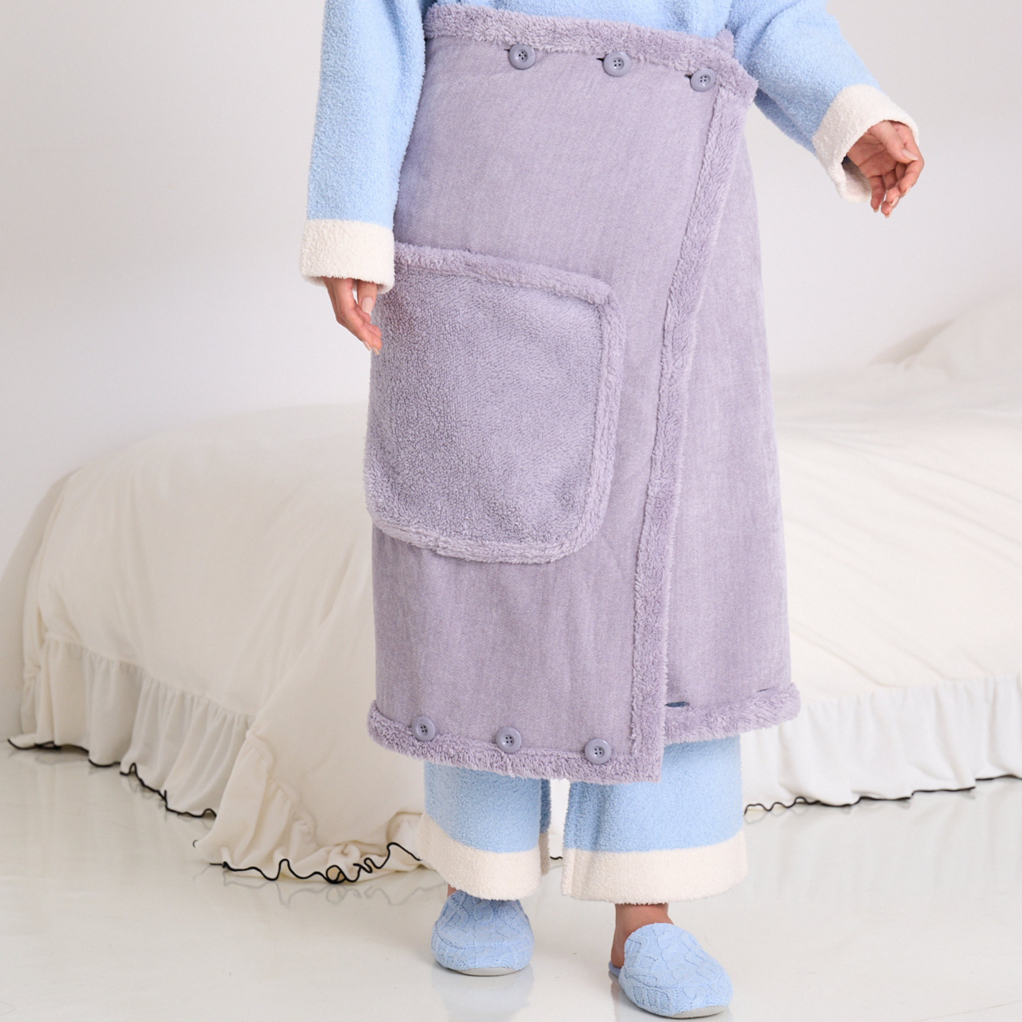 前にボタンがついていてずれにくい仕様なので、肌寒い日の家事やリモートワーク、まったりタイム、いつでもあたたかくお過ごしいただけます◎