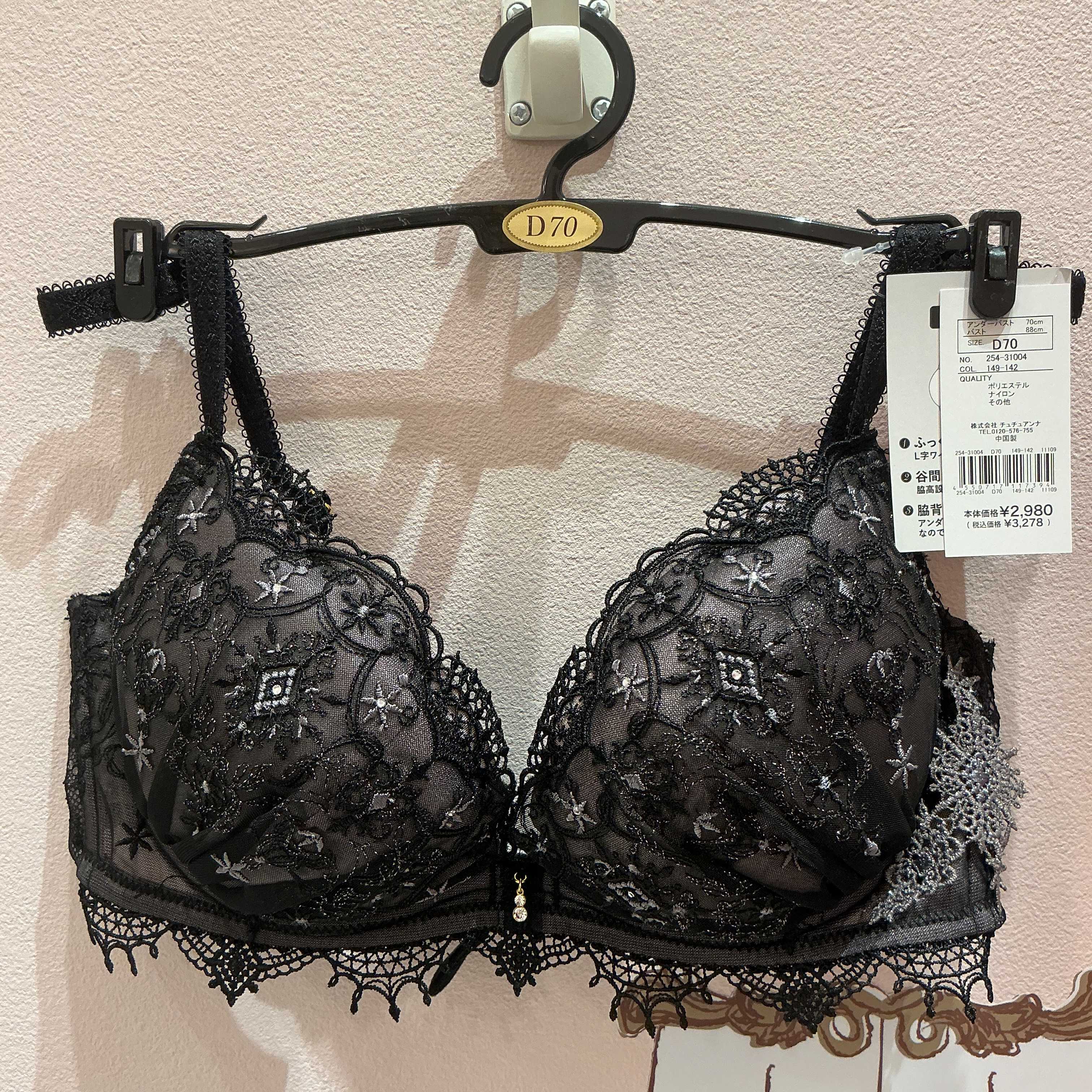・脇部分が高く前の中心部分が低いL字ワイヤーと2枚のパッドが、脇からしっかりとお胸を寄せ、深く丸みのある谷間をメイク。