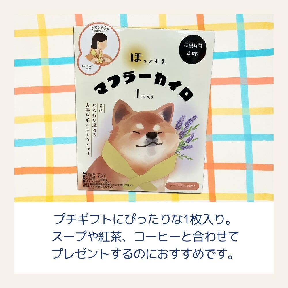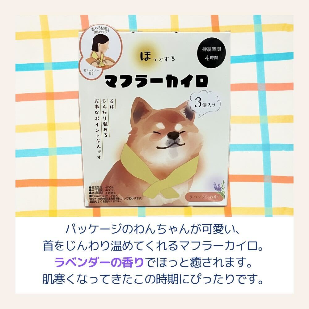 マフラーカイロでホカホカ気持ちよくなっているわんちゃんのパッケージがとってもかわいいです♡