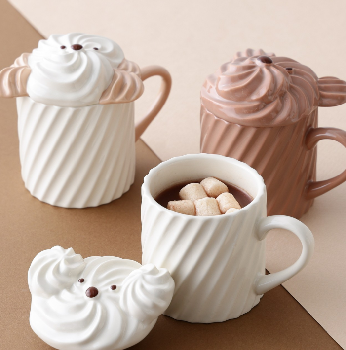 まるでホイップのデコレーションのような、いぬとくまの顔がキュート♡遊び心のあるデザインのマグカップ。