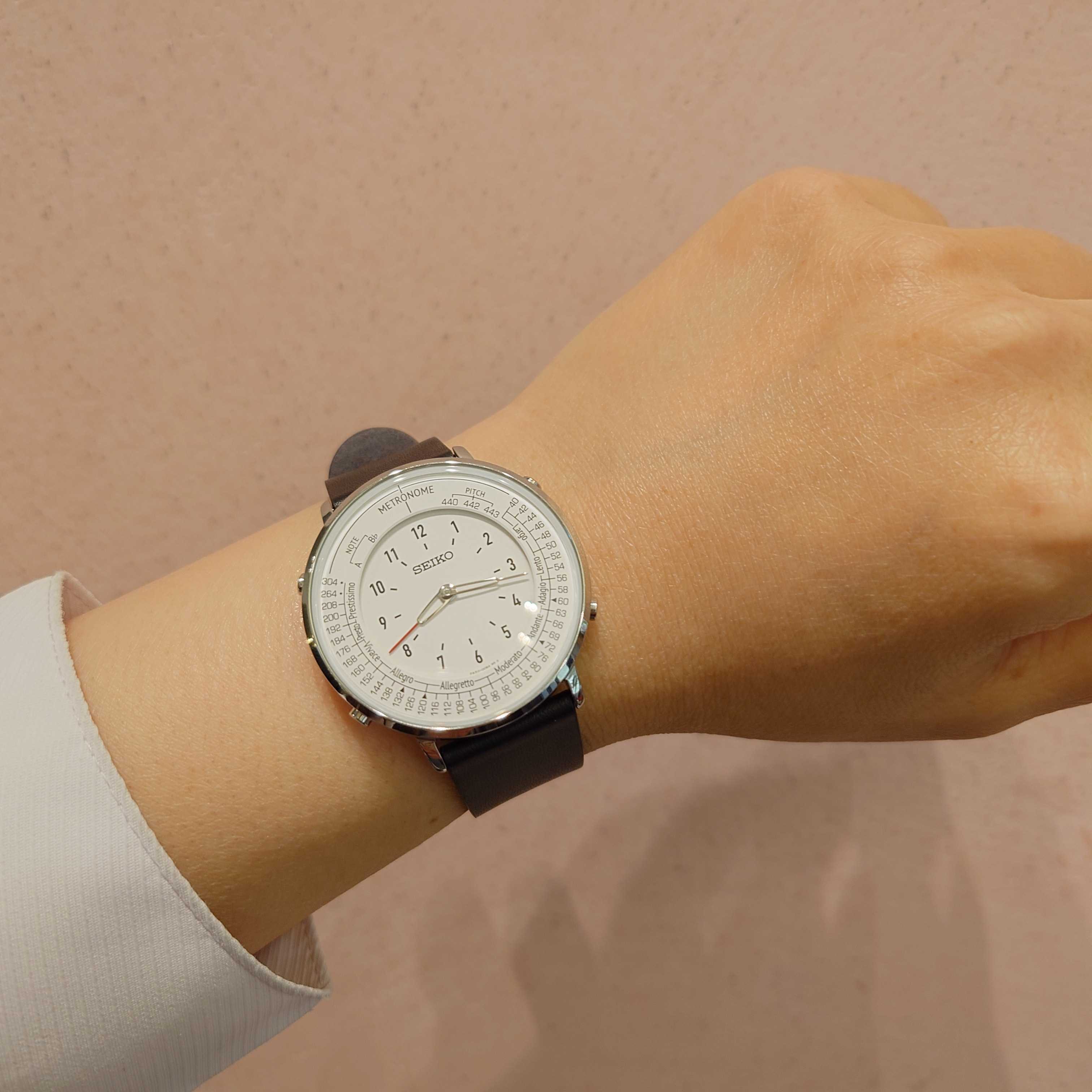 「SEIKOメトロノームウオッチ」は、時計の針の動きで、演奏に必要なテンポや基準音が分かる今までにない腕時計。