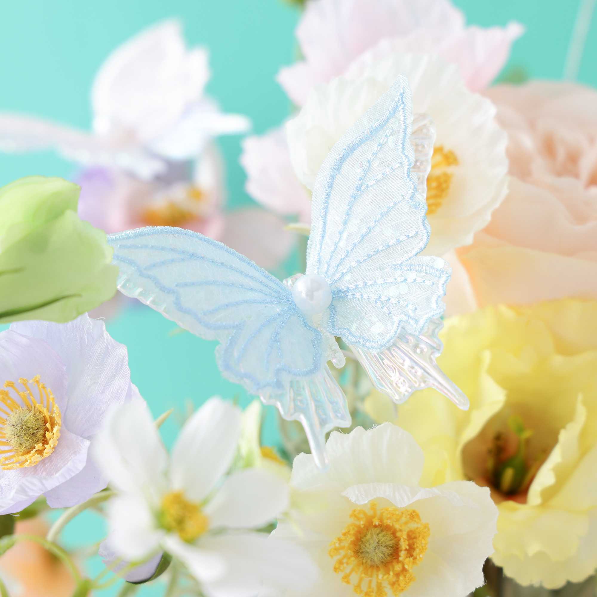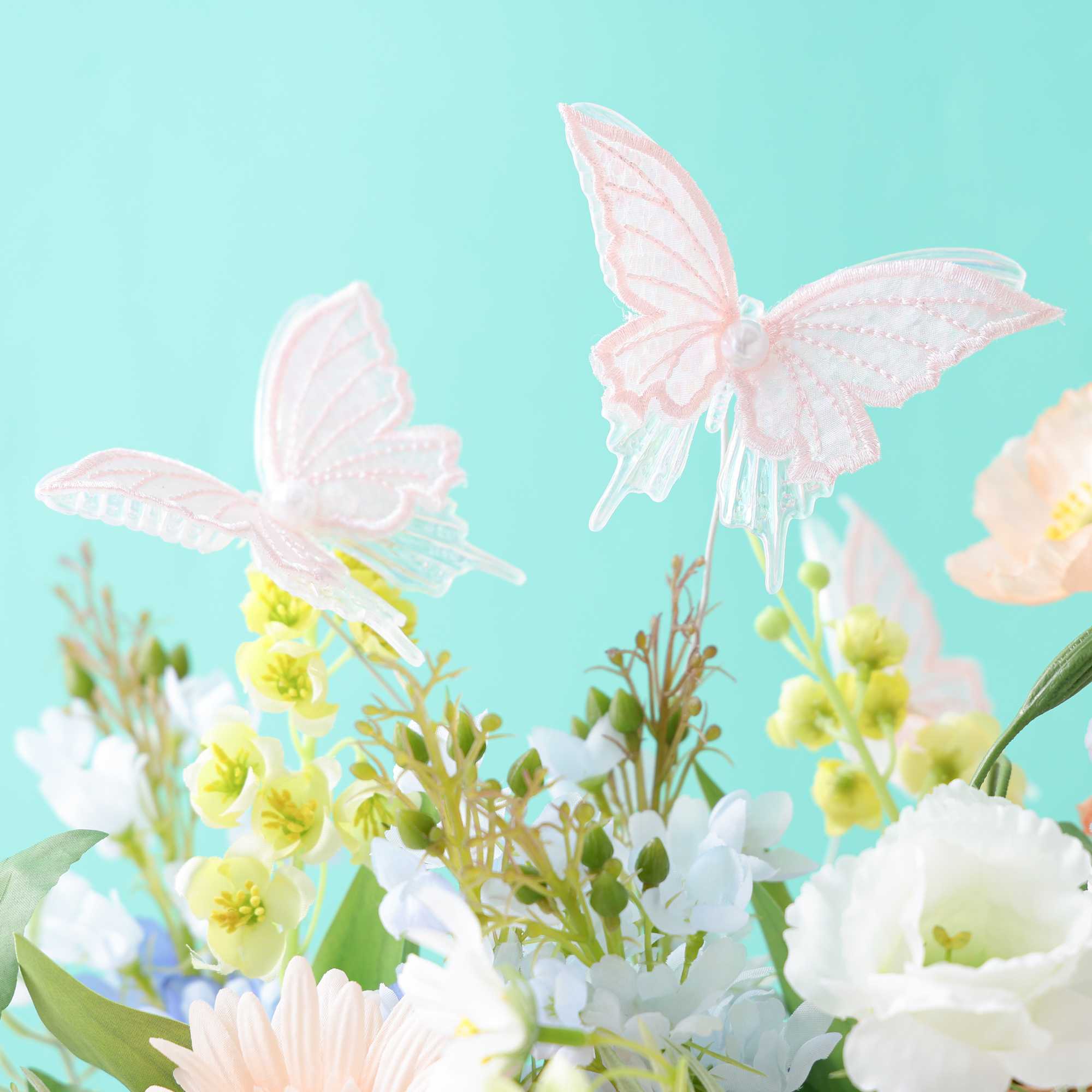 春らしいカラーのアートフラワーと一緒に飾ると、まるでお花の香りに誘われた蝶が集まっているかのように演出してくれます✨