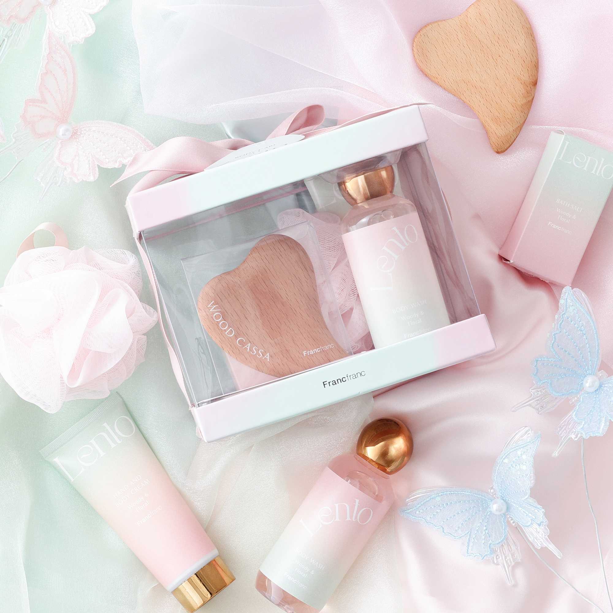 “ゆるやかに”を意味する「LENTO(レント)」という名前の通り、思わず深呼吸したくなるような至福のバスタイムを楽しめるアイテムがセットになっています☆