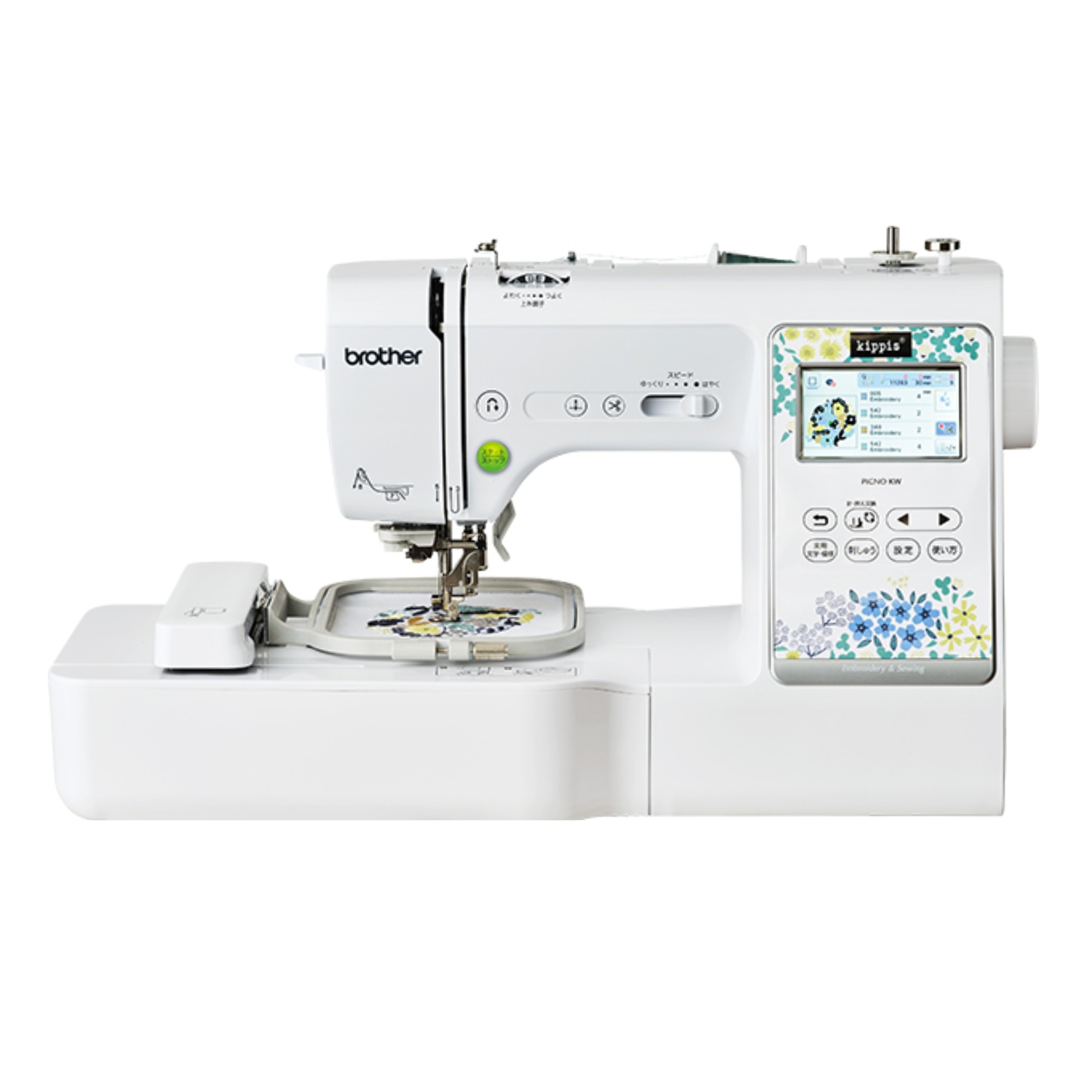 kippis®デザインの刺しゅう模様を内蔵! しっかり縫うための実用機能と作品をおしゃれに演出するためのステッチを内蔵。 仕上がりの美しさはもちろん、使い心地も快適です。 刺繍だけではなく通常の直線縫いも出来ます。