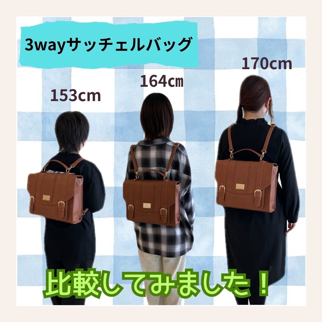 身長や服装が違うスタッフ3人で同じバッグを持って比較をしてみました!