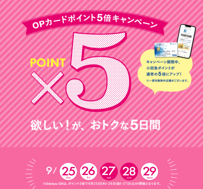 また、9月25日(木)~29日(月)は小田急OP ポイント5倍キャンペーン開催です!