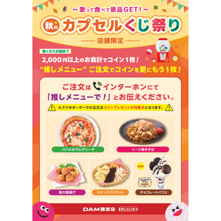 「ビッグエコー海老名駅前店」では、秋のカプセルくじ祭りを開催中!