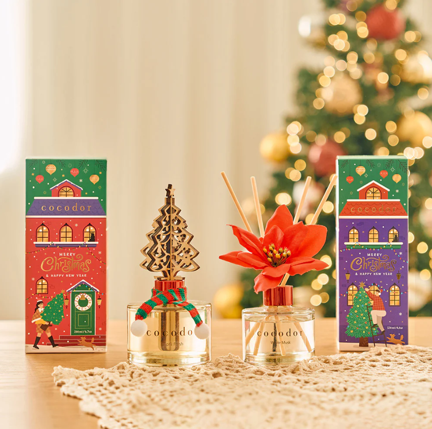 上品な香りと華やかなパッケージは、空間を一瞬でホリデームードに変えてくれます。