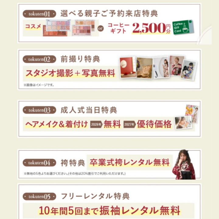 ・フリーレンタル特典(振袖レンタル10年間無料)