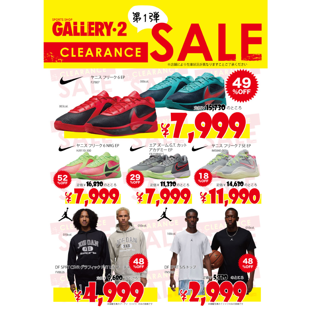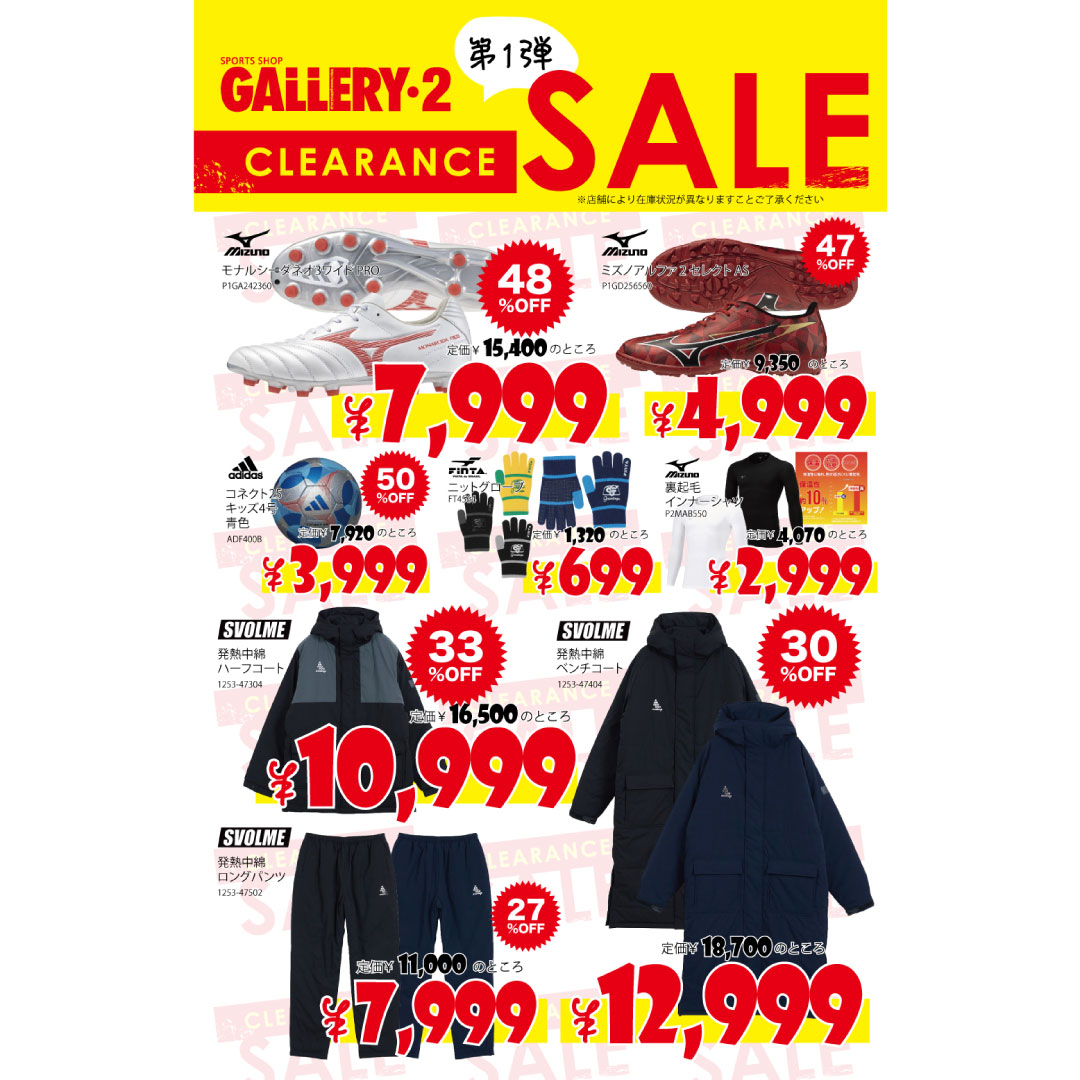 2026年1月22日 NEWお買い得も、楽しみもドンドン増える!クリアランスセール【第1弾】 お買い得も、楽しみもドンドン増える!クリアランスセール【第1弾】 GALLERY・2公式アプリのご登録はコチラ▼ お気に入り店舗『海老名店』&お好きなカテゴリーのフォローをお忘れなく! Instagram始めました!ぜひフォローお願いします♪ スポーツショップ GALLERY・2 1番館 3F ショップ情報をみる