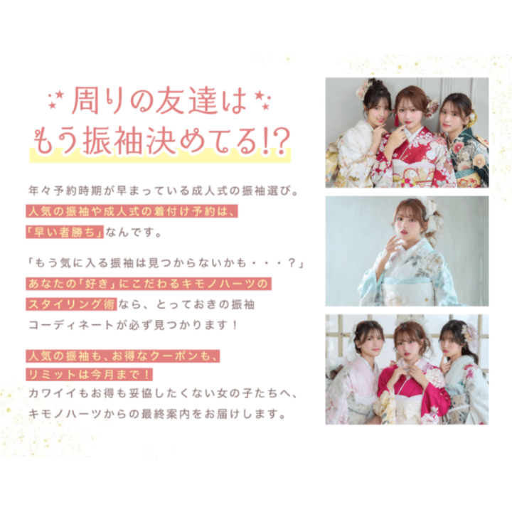 人気の振袖も、お得なクーポンも