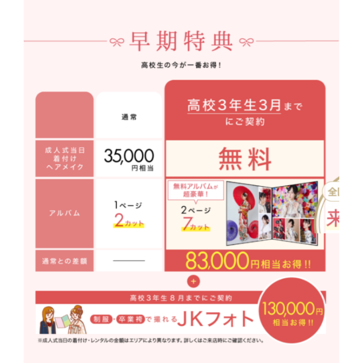 ✅成人式当日のお支度代(35,000円相当)が無料!